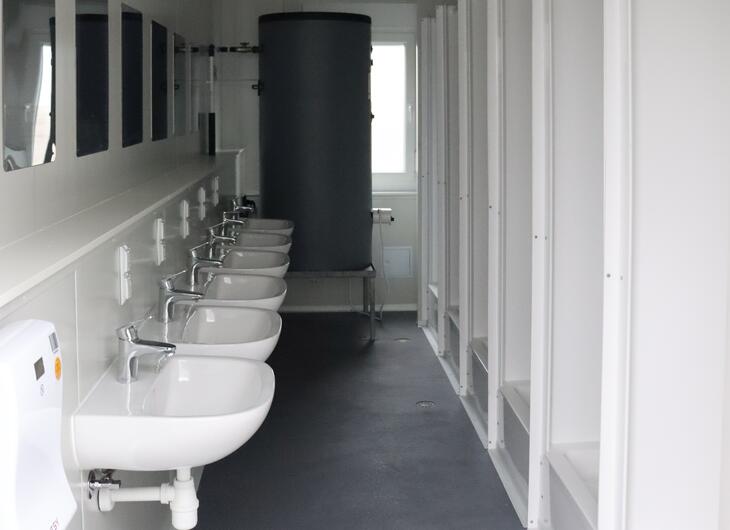 6 Handwaschbecken w/k, mit Spiegel, Ablage, Handtuchhaken