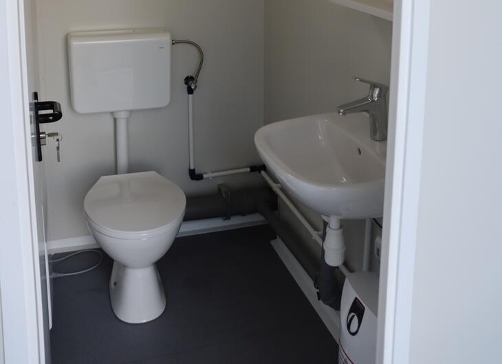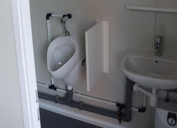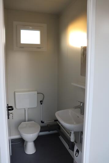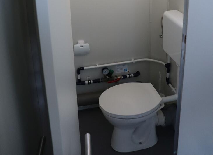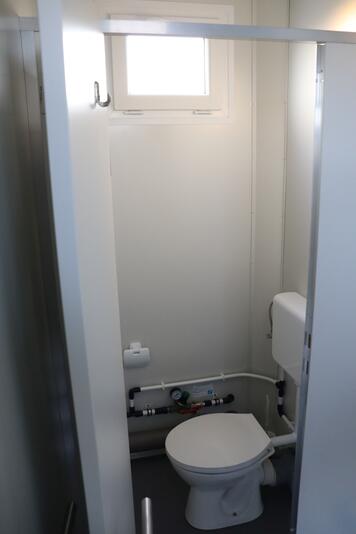 2 WC-Kabinen, kpl. mit Spülkasten, Papierhalter, Kleiderhaken