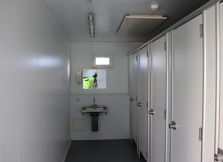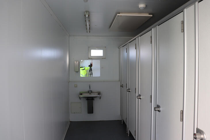 5 WC-Kabinen, kpl. mit Spülkasten, Papierhalter