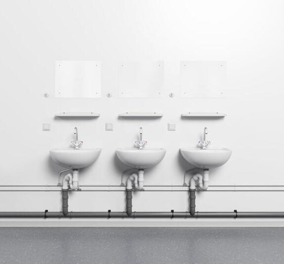 Glatte, abwaschbare Oberflächen und kunststoffbeschichtete Wände ermöglichen eine leichte Reinigung.