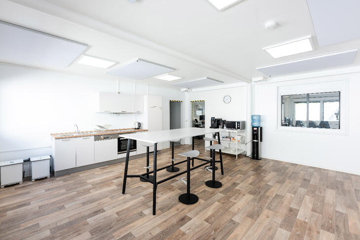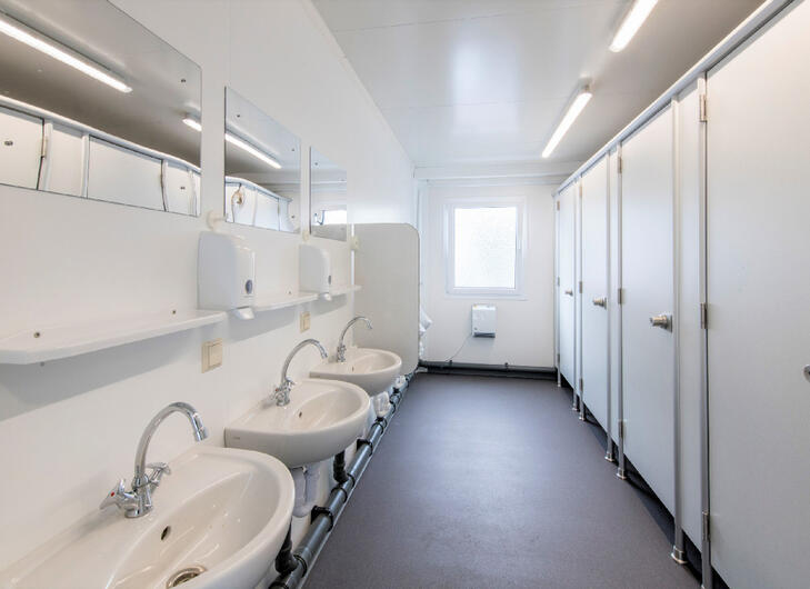 Um Ihren mobilen Bürokomplex bestmöglich zu nutzen, bieten wir Ihnen weitere Raumlösungen wie Seminarräume, Aufenthaltsbereiche mit Küchenzeile und Sanitärräume an. Natürlich können Sie bei uns auch Bürocontainer kaufen.