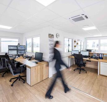 Rauchwarnmelder und eine Elektroinstallation nach VDE-Vorgaben sorgen für Sicherheit. Die dimmbare LED-Beleuchtung spart Energie und kann auf die jeweiligen Lichtverhältnisse und Wünsche der Hanrath-Mitarbeitenden angepasst werden. Wie bei ECE üblich, wurde die Bürocontainer-Anlage mit eigenen Lkw mit Ladekran angeliefert, von erfahrenen Montageteams aufgebaut und schlüsselfertig an den Kunden übergeben.