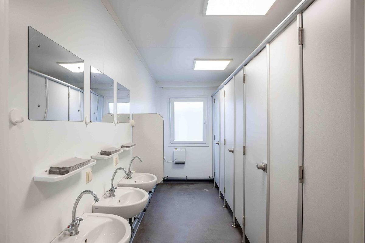 Die insgesamt 80 ELA Module bieten auf zusammen 1.200 Quadratmetern Platz für Büros, sanitäre Einrichtungen und Erste-Hilfe-Bereiche. Das benötigte Mobiliar mit Tischen, Stühlen und Spinden wurde von ELA Container direkt mitgeliefert. Bei uns finden Sie eine große Auswahl an Bürocontainer zur Miete in Köln.