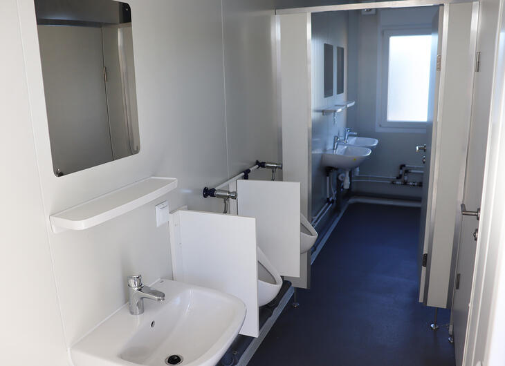 3 Handwaschbecken w/k, mit Spiegel, Ablage, Handtuchhaken