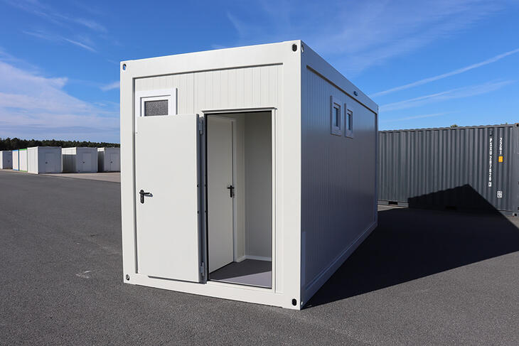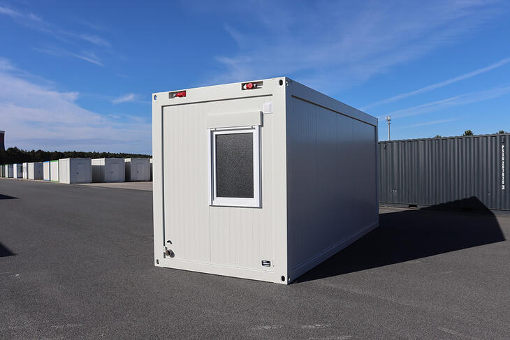 Decke und Wände in Blechausführung in hellem, freundlichem Farbton, hellgrau